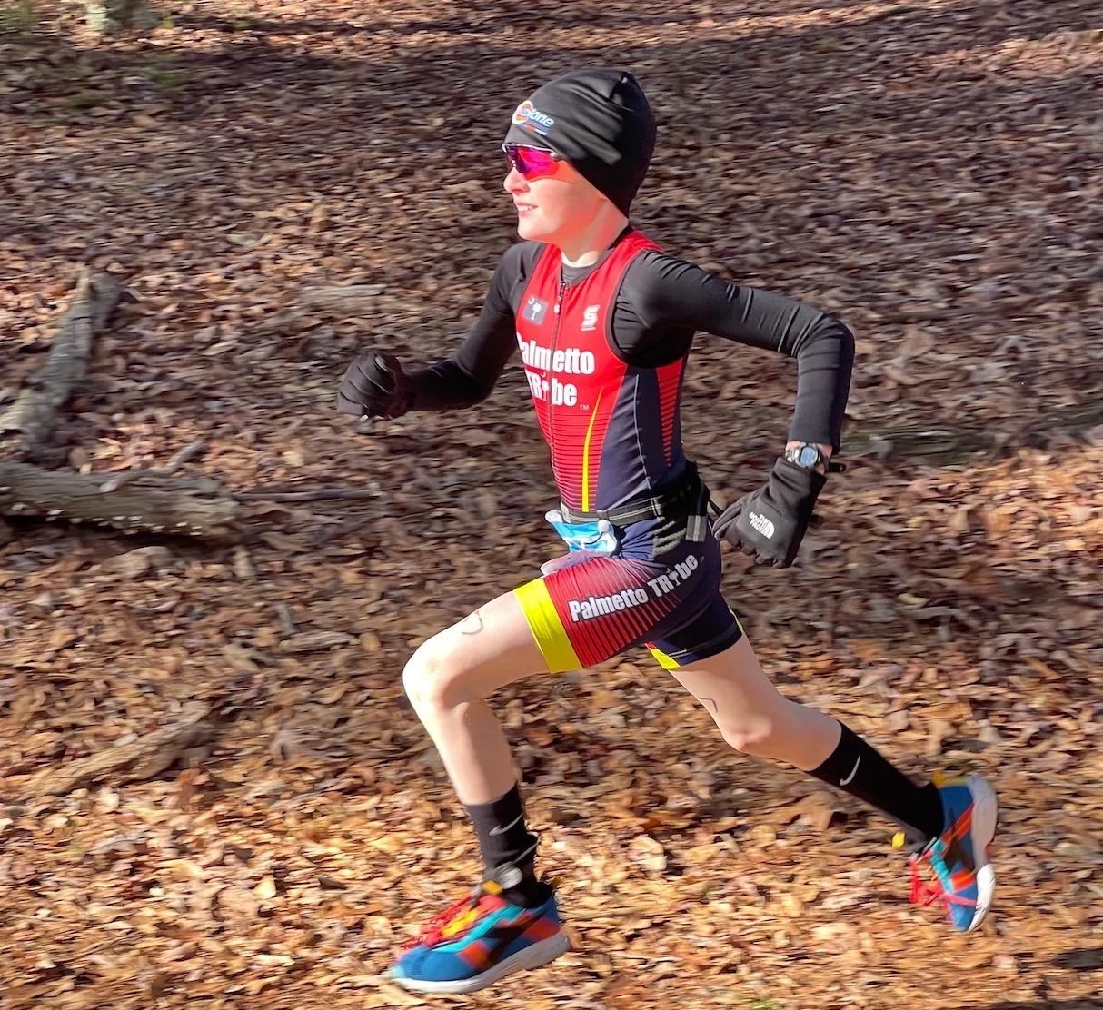 Keene shows off good form during the run leg of Andy’s Race (Sprint Triathlon)